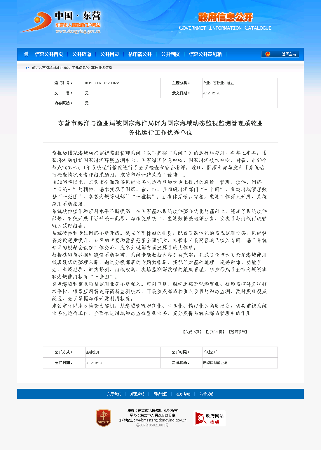 东营市;海洋与渔业局;国家海洋局;监视监测;优秀单位