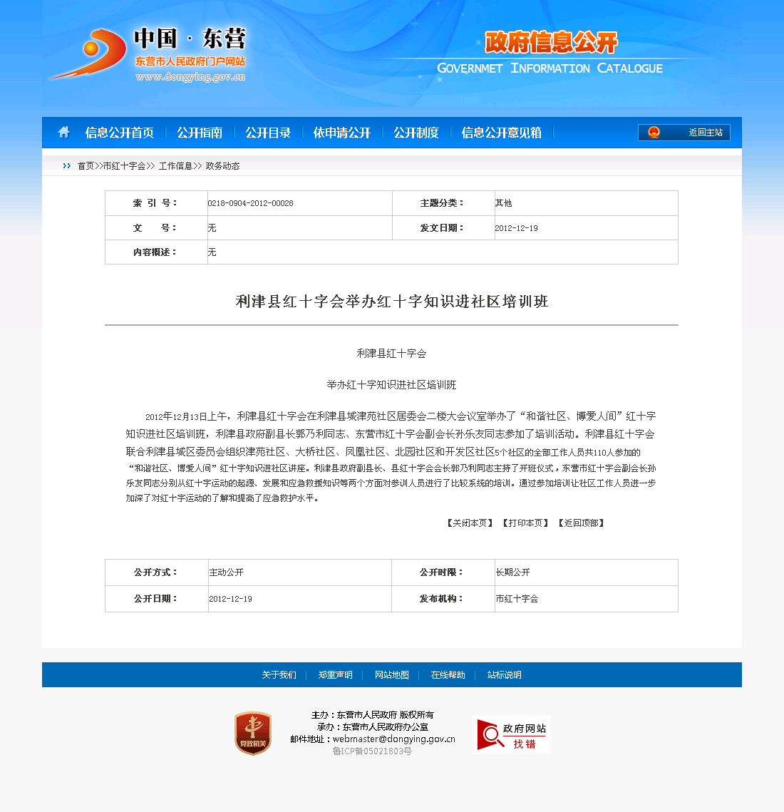 利津县;红十字会;红十字知识;社区培训班;应急救护