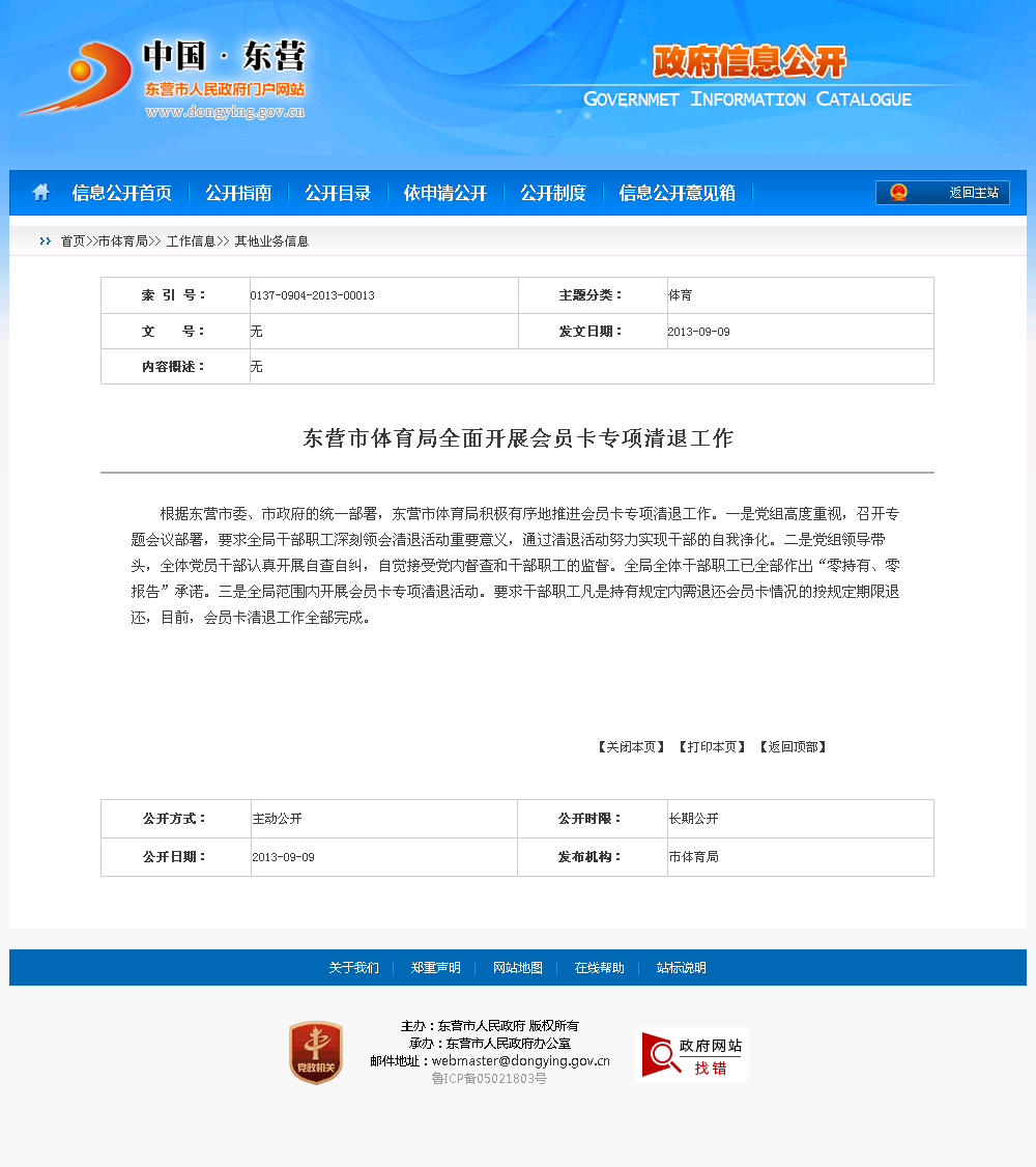 东营市;体育局;会员卡;专项清退