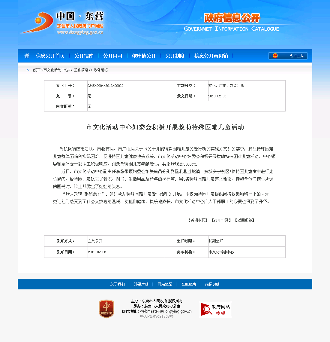 东营市;文化活动中心;妇委会;特殊困难儿童;救助