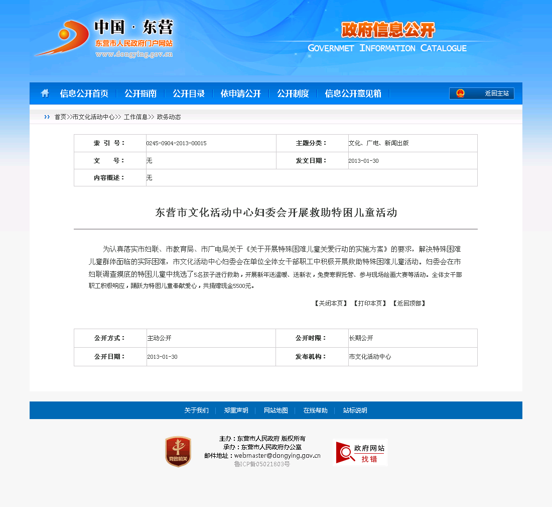 东营市;文化活动中心;妇委会;特困儿童;救助