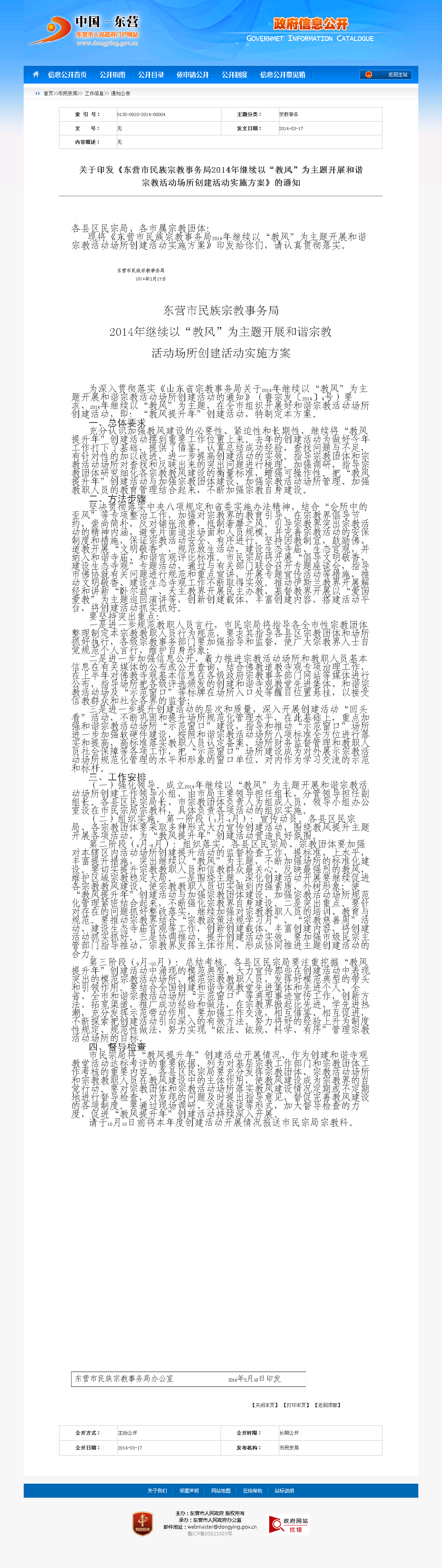 东营市;宗教;活动场所创建;实施方案