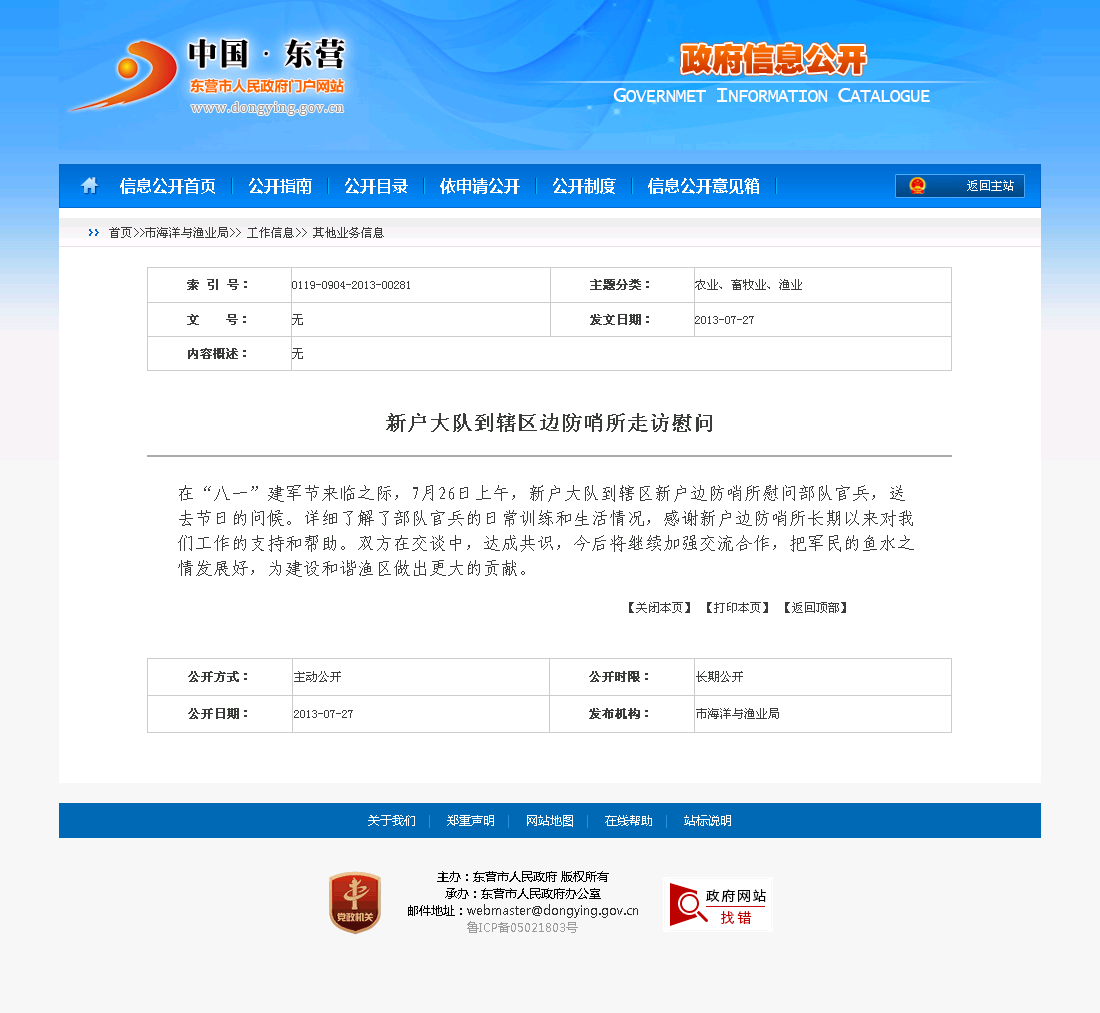 东营市;新户大队;边防哨所;慰问